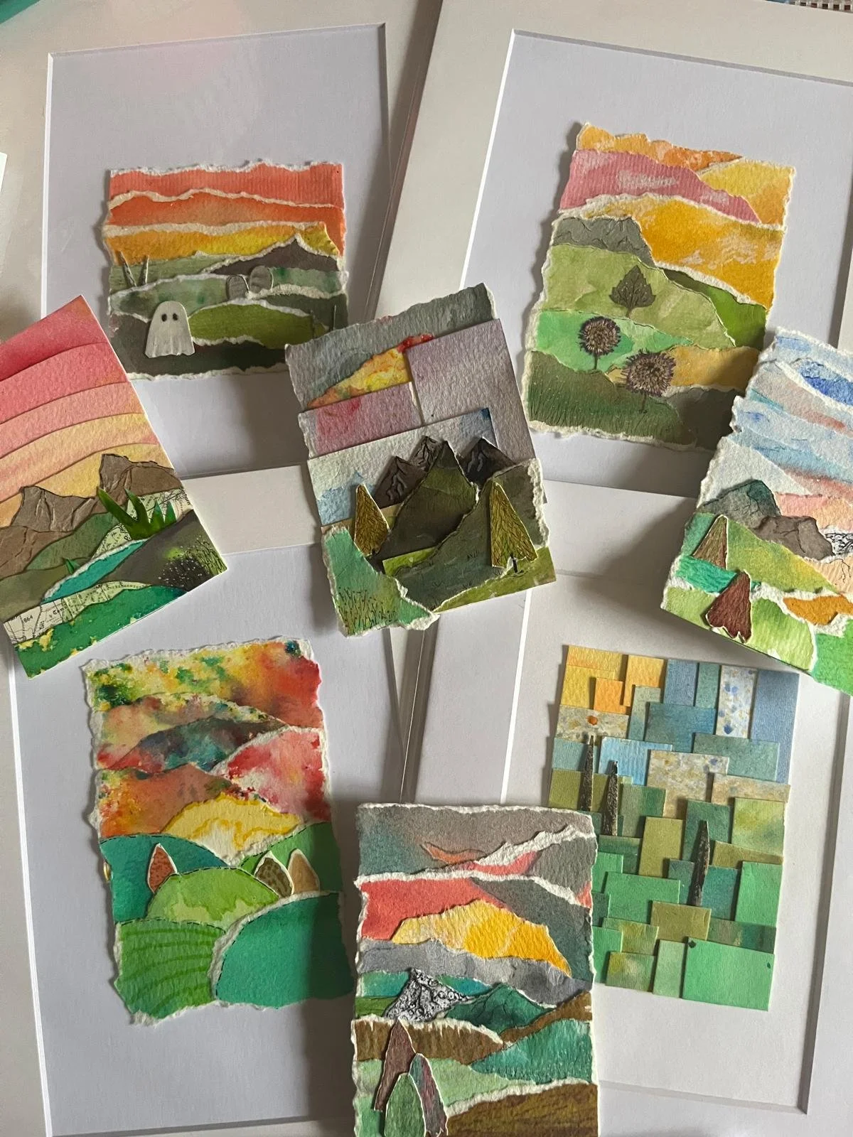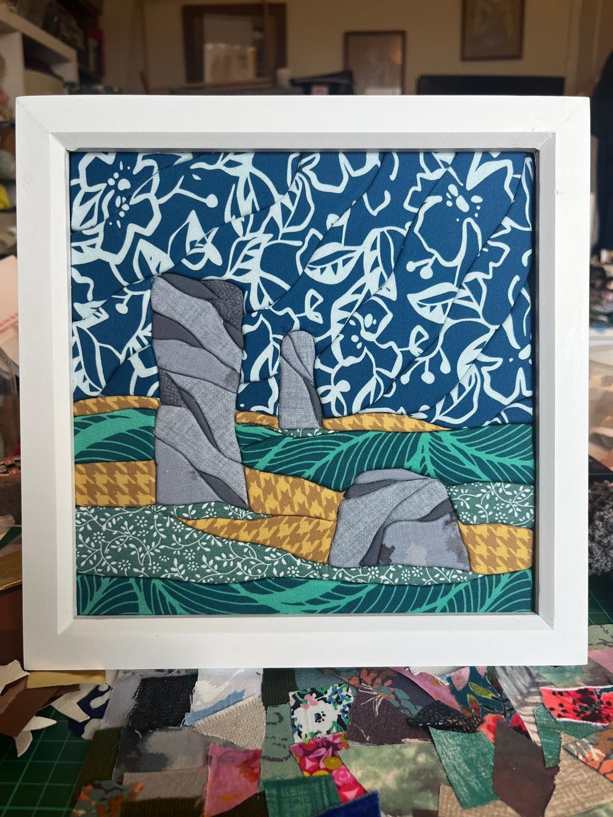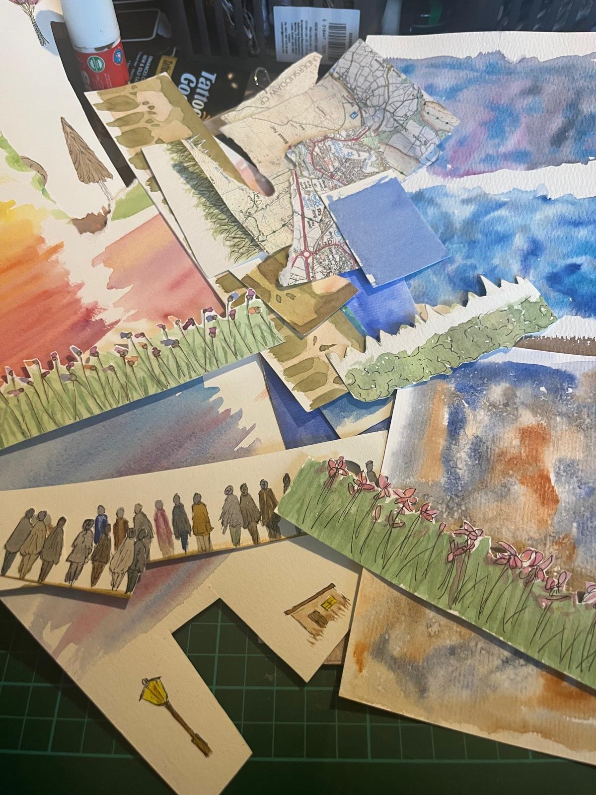 Hello, my name is Sophie and enjoy playing with art. I have a studio space at Artsite, and am currently on the committee for Swindon Open Studios. I am definitely a jack of all trades and master of none, having spent time with crochet, book binding, print making and, at the moment, different forms of collage including paper collage, hand embroidery fabric collages and kinusaiga. I have always struggled with proportions, perspectives and composition when trying to paint and draw, and experimenting with collage has opened up artistic possibilities that I had always thought were beyond my skillset.