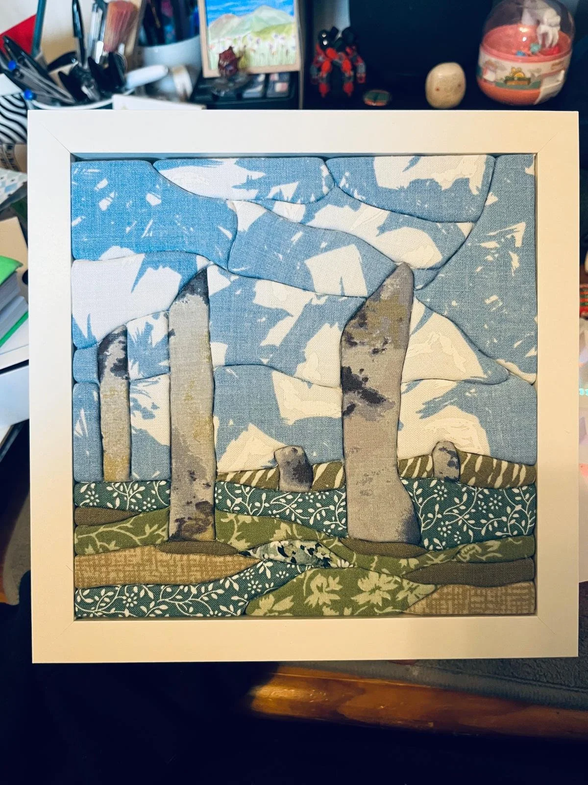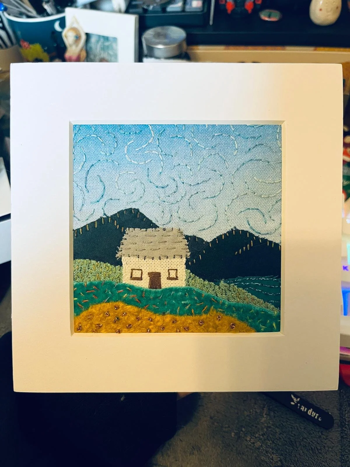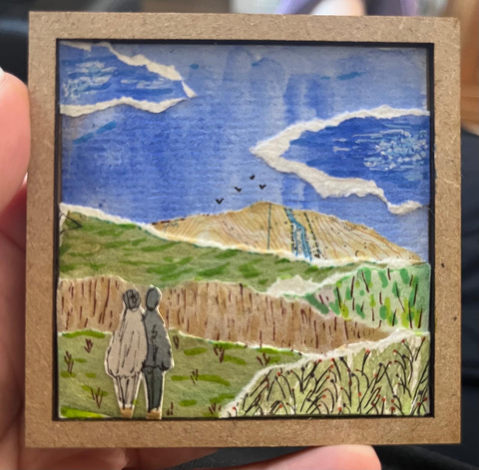 Hello, my name is Sophie and enjoy playing with art. I have a studio space at Artsite, and am currently on the committee for Swindon Open Studios. I am definitely a jack of all trades and master of none, having spent time with crochet, book binding, print making and, at the moment, different forms of collage including paper collage, hand embroidery fabric collages and kinusaiga. I have always struggled with proportions, perspectives and composition when trying to paint and draw, and experimenting with collage has opened up artistic possibilities that I had always thought were beyond my skillset.