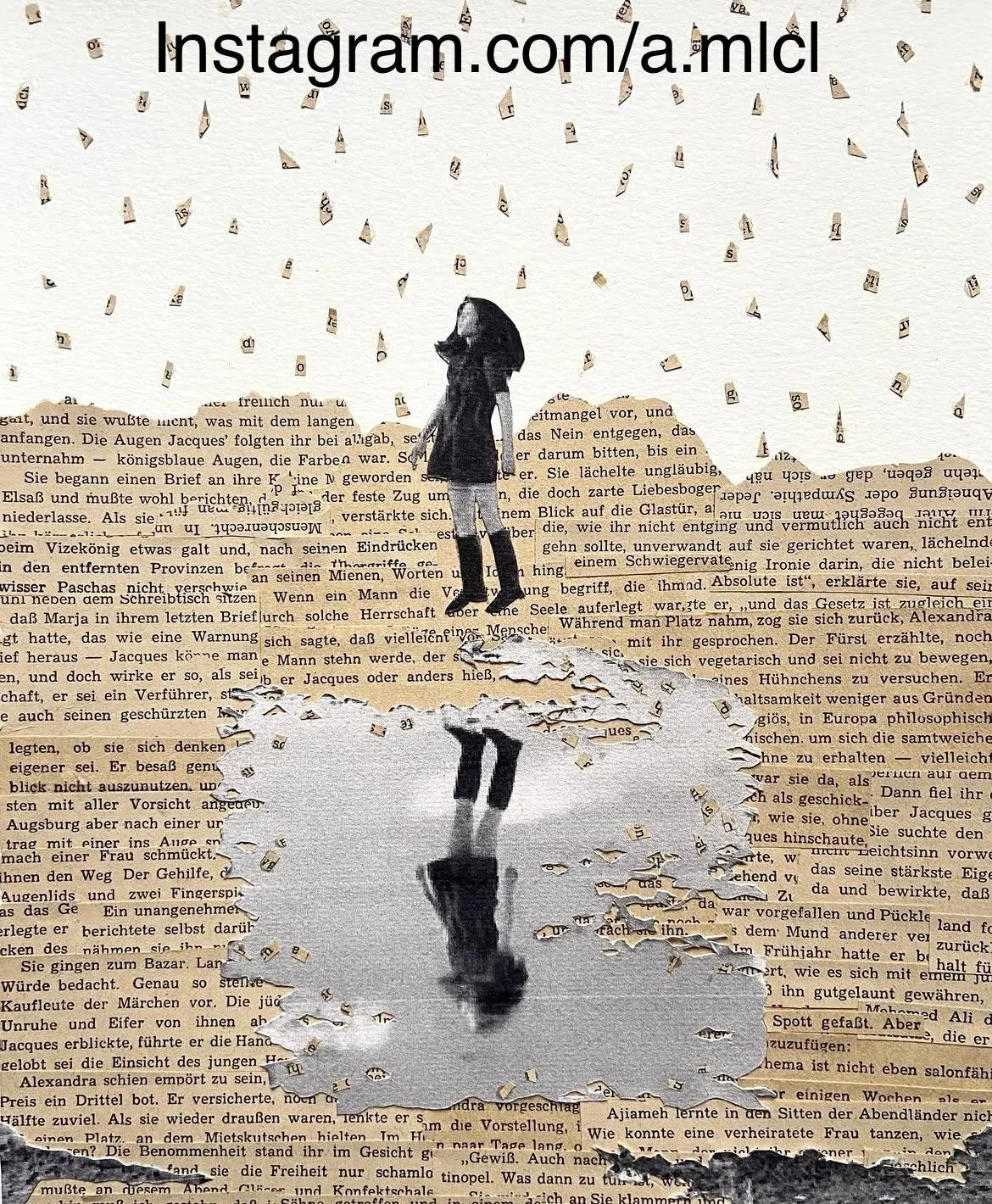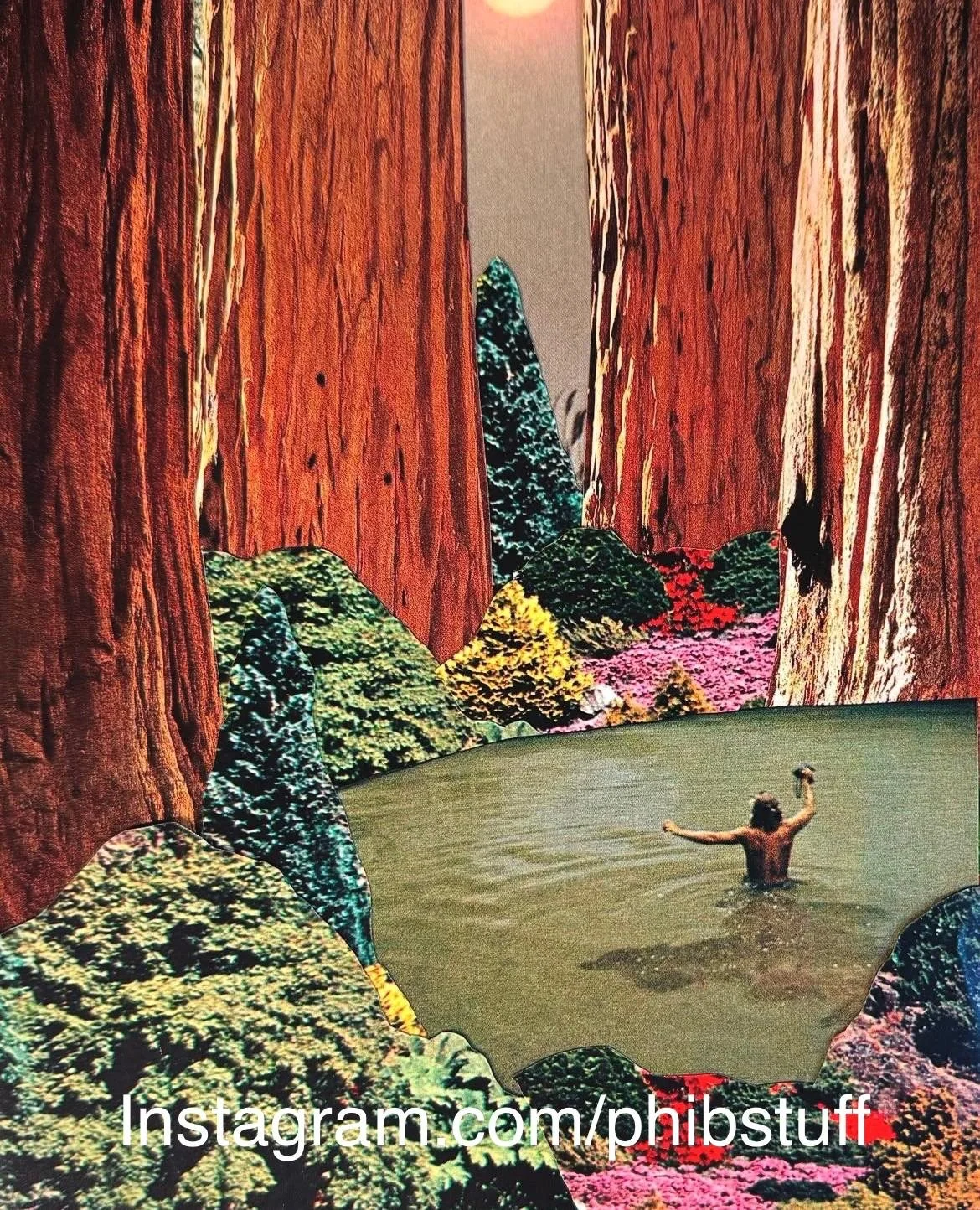 When I’m working on a collage piece and my mind wanders, I often think about the way everything is made up of different parts, and nothing is whole without all its pieces. As people we are a complex puzzle of organs, bones, skin, hair and more, and when you look at everything else in life the story is the same. A landscape is made of hills, mountains, trees, flowers, grass, the sky... Even those simple scenes used when first learning to paint are made up of so many parts – different pieces of fruit, the bowl they sit in, the table, the vase behind full of individual flowers made up of stems, and petals and leaves and thorns…