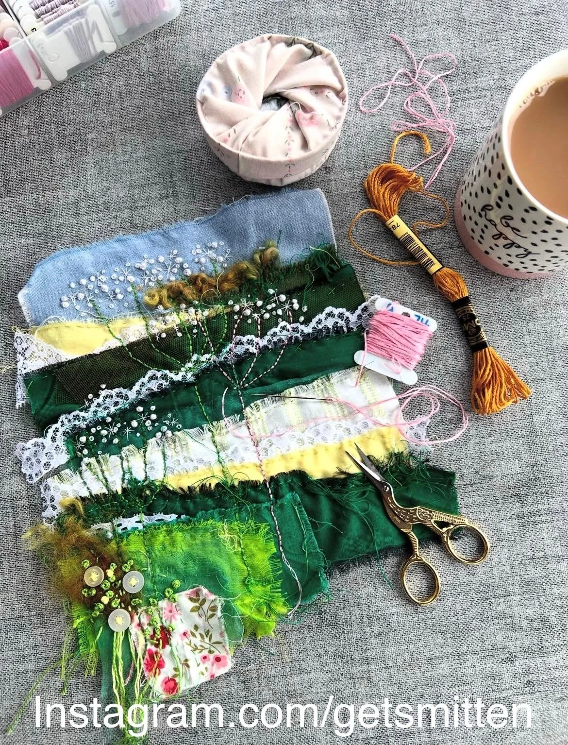 Collage incorporates so many different styles and mediums, and the exhibition is open to paper collage, fabric collage and mosaics. Paper collage might include using cuttings from magazines, newspapers and books, ripped up packing material, pieces of maps and tissue paper. Fabric collage might include embroidered collage or kinusaiga, and mosaics can incorporate all manner of items. Collages work really well when you mix mediums, so don’t be afraid to incorporate different materials in one piece. Your work can be glued, stitched, pinned, stapled, or joined in whatever way works for you.